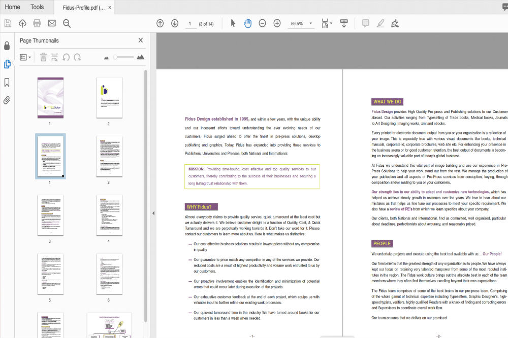 Fidus specializes in PDF conversion services. We convert paper/scanned documents into compact, searchable PDF files. Enhanced PDF can have bookmarks, hyperlinks to valid URLs, and also cross-links in both directions.